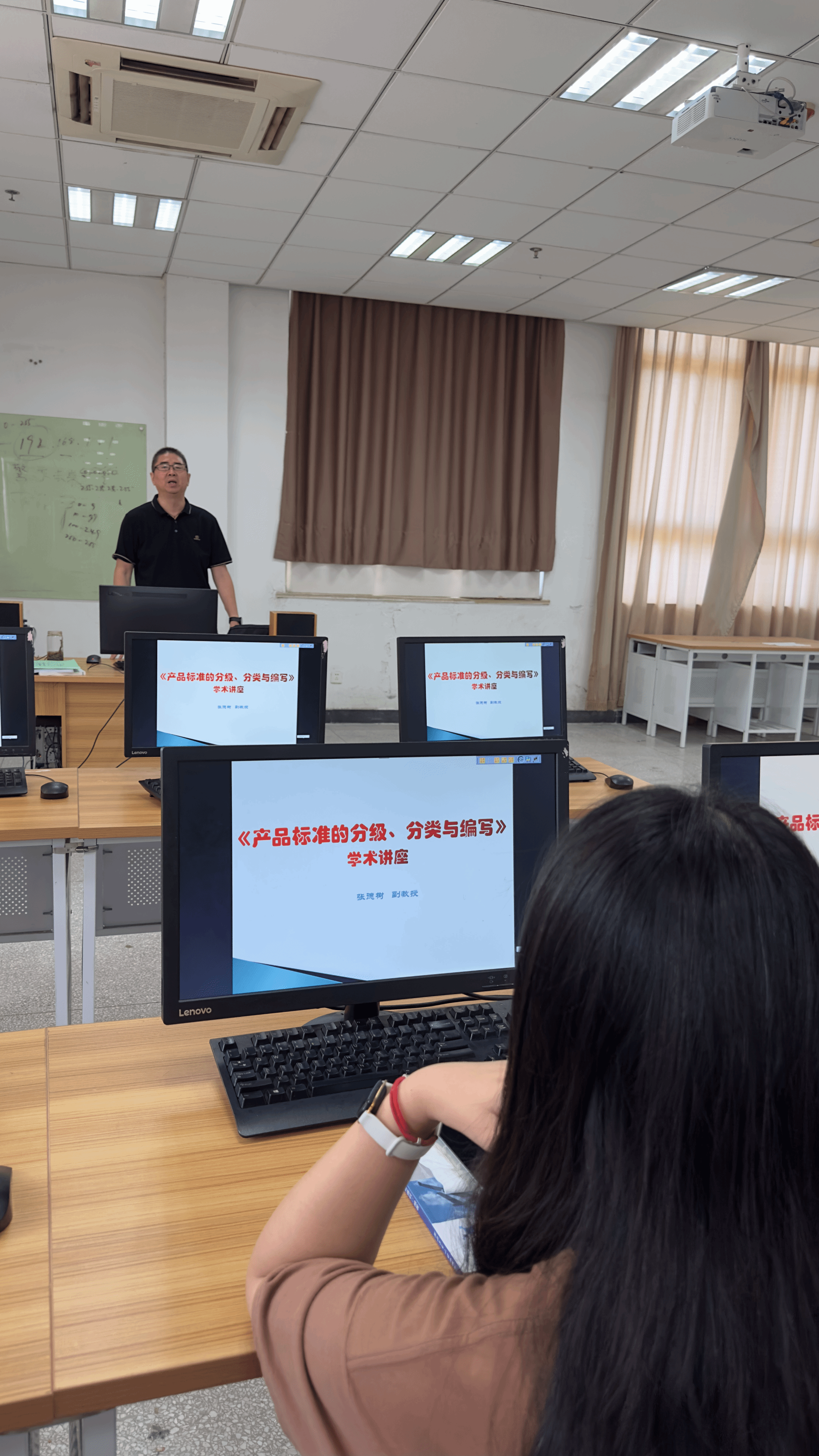 2023年9月18日上午,信息工程学院张德树老师在Z505教室,举办题为“产品标准的分级、分类与编写”的讲座,信息工程学院计算机类相关专业约百余名学生听取了讲座。