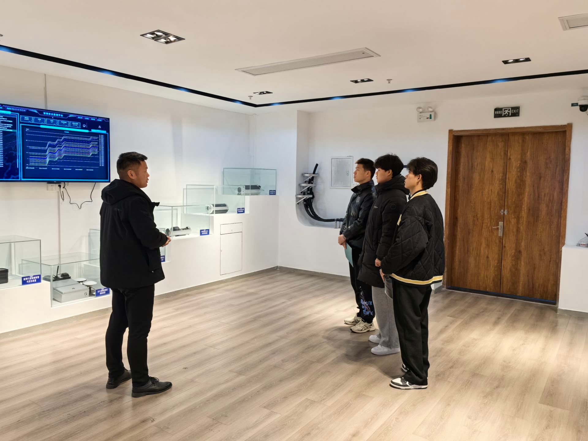 在安徽健驰公司许经理的带领下,师生共同参观企业展厅,了解企业文化,深入学习了高压电缆故障精确定位装置、配网行波故障预警装置、智慧线路物联网综合检测系统、输电线路云台微拍在线监测装置等产品信息,并对未来物联网行业的发展进行了讨论与交流。