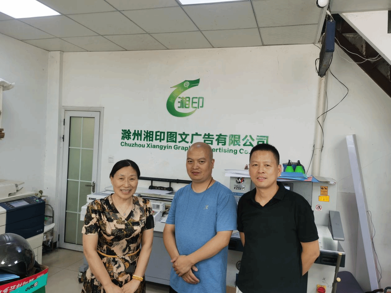 8月6日上午,李华、王磊两名老师赴滁州弘毅(湘印)图文广告有限公司开展访企拓岗活动。两位老师参观了公司的工作流程,直观了解了图文广告制作的全链条操作。随后双方进行了深入交流,两位教师详细介绍了信息技术课程的教学大纲与实施情况,并提到了课程体系中将融入人工智能通识教育的举措。公司王总介绍了公司的发展历程、主营业务范围及近年来在数字化印刷、智能排版等领域的持续发力,对具备信息技术与图文处理交叉技能的专业人才需求迫切。