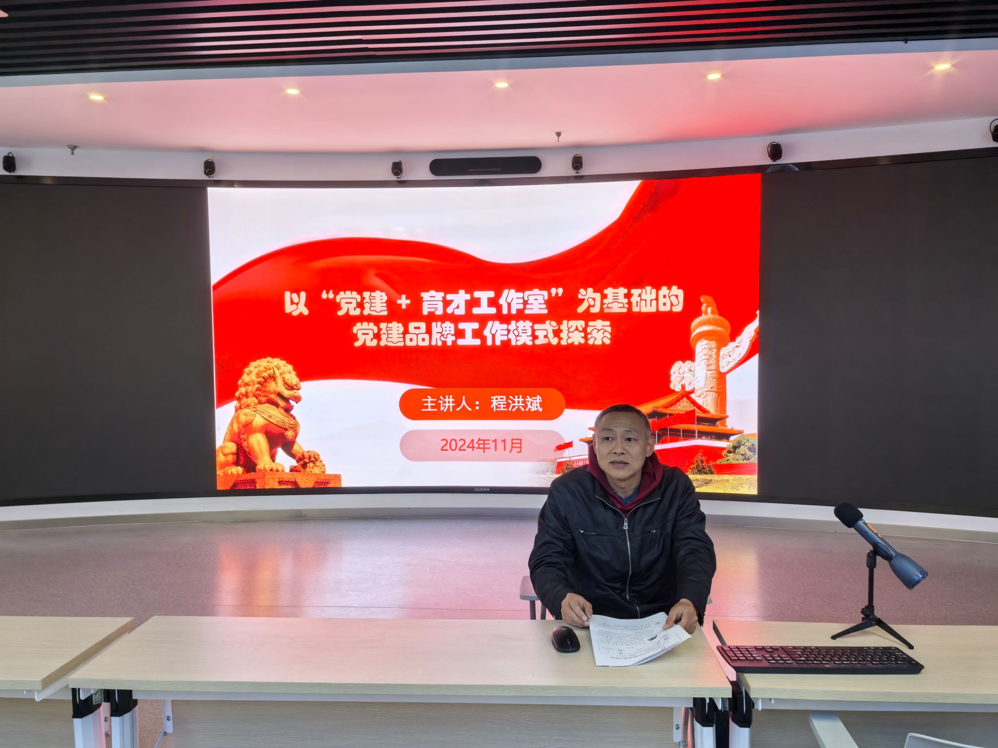 11月20日下午,信息工程学院党总支书记程洪斌在VR实训室为全体党员教师讲授了一场主题为《以“党建+育才工作室”为基础的党建品牌工作模式探索》的党课。