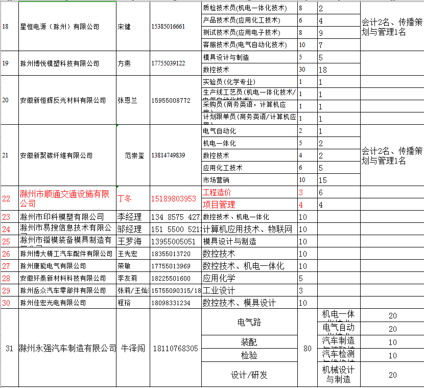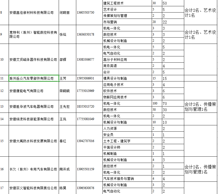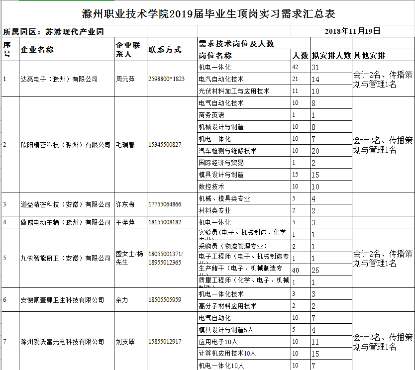 11月20日苏滁现代产业园顶岗实习汇总表(最终稿11点)
