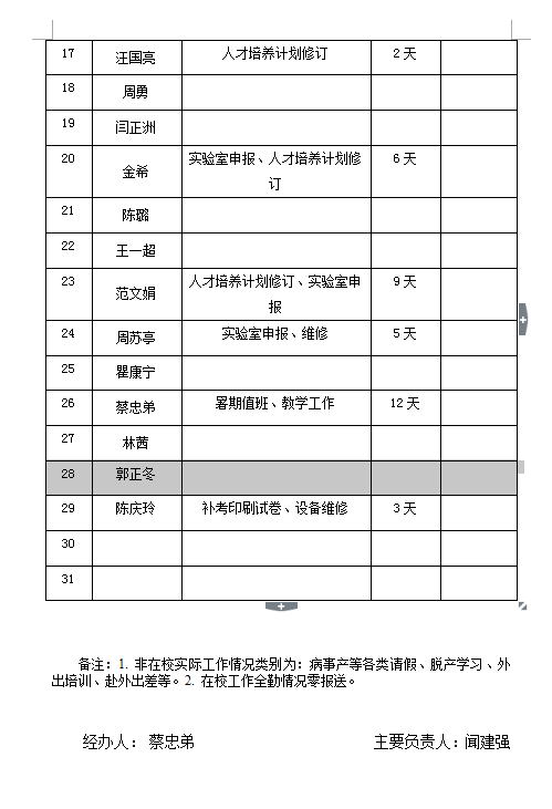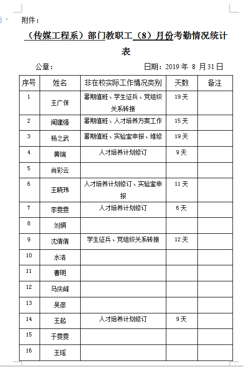 传媒与设计学院8月份教职工考勤情况