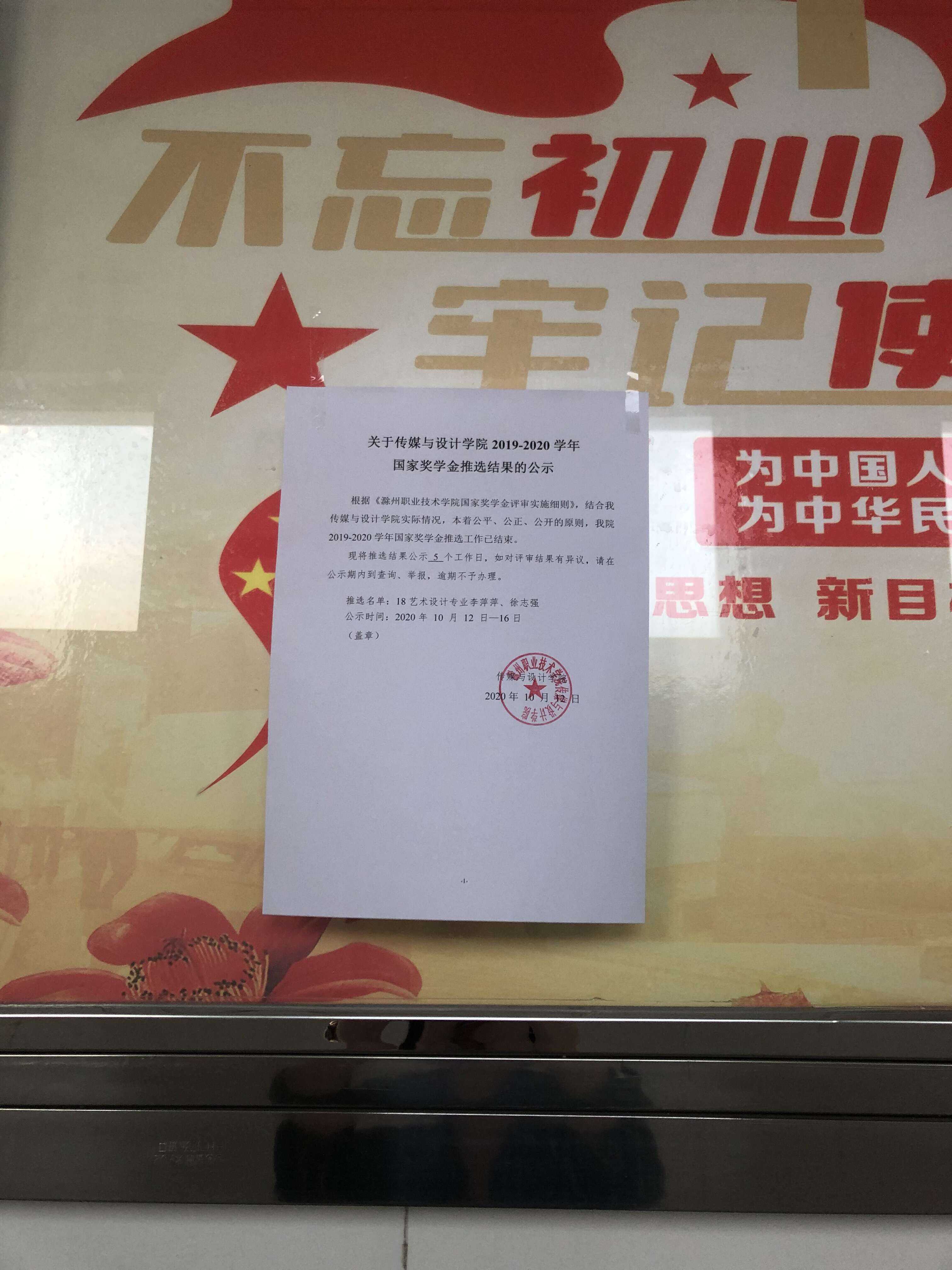 传媒与设计学院:2019-2020学年国家励志奖学金评比结果公示