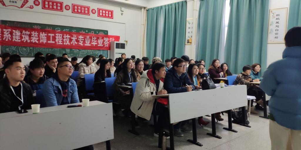 近日,建筑装饰教研室在德馨楼艺102教室举行2019届建筑装饰专业毕业答辩工作。本次答辩主要由黄瑞、吴彦、周勇、马庆峰、陈璐等系内教师担任答辩评委工作,同时邀请了滁州创家装饰设计工程有限公司的设计总监参与指导。