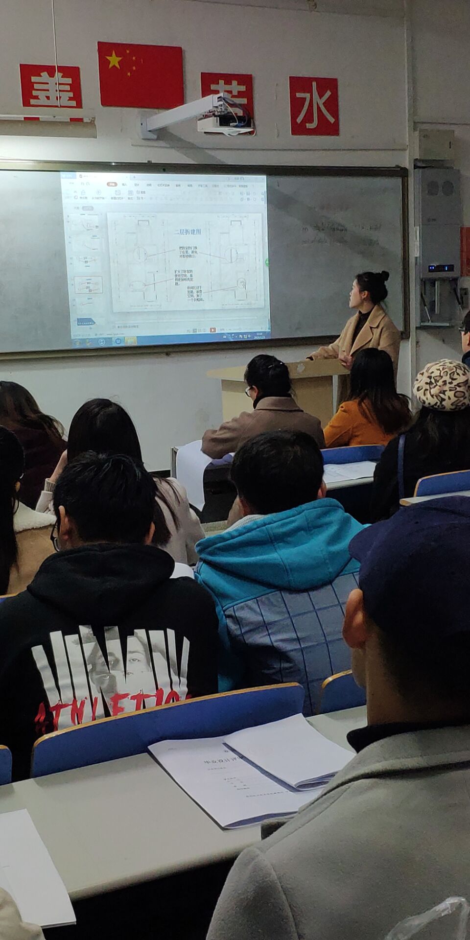 答辩现场,同学们认真汇报PPT文件,从CAD图纸、3D效果图、彩色平面图展示、工程预算书等方面阐述自己的设计作品,大家汇报条理清楚、语言流畅,得到了企业的充分肯定与认可,不时传来掌声,企业当时就抛来了橄榄枝并发出邀请。