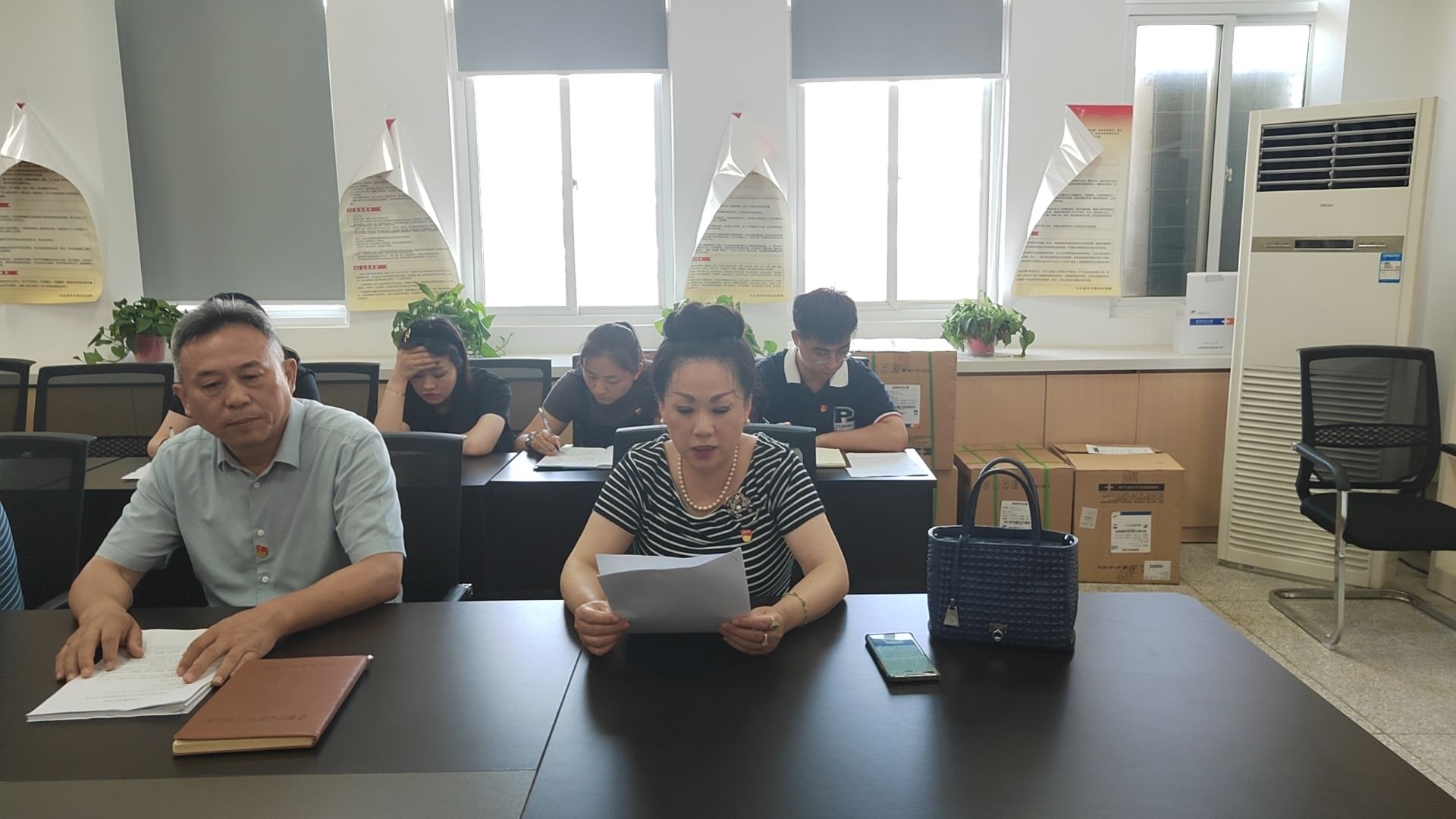 7月5日,传媒与设计学院党总支组织全体党员教师在德馨楼会议室召开庆祝中国共产党成立102周年全体党员大会。会议由学院党总支书记王广保主持,全体党员教师参会。