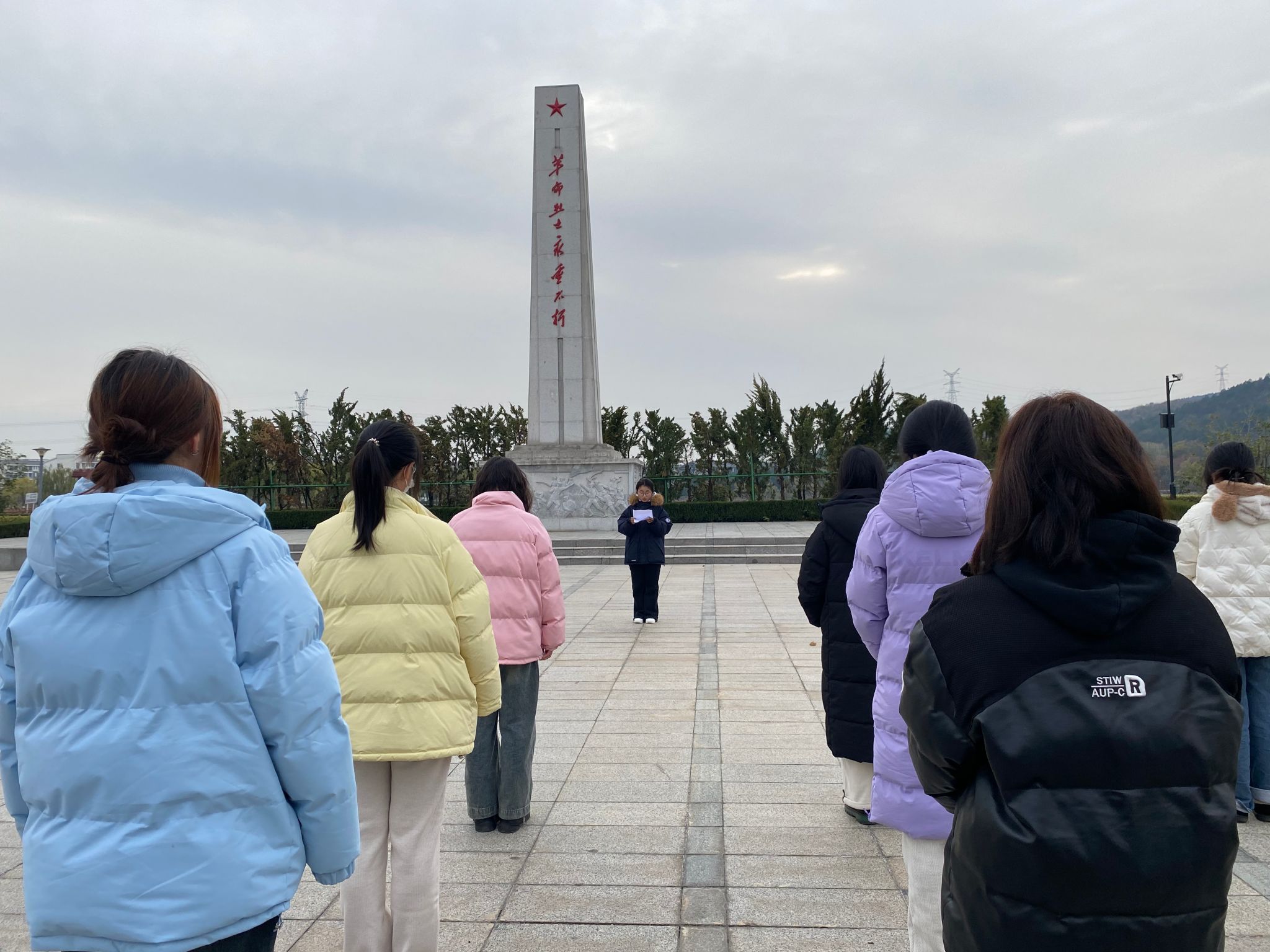 在支部组织委员吴涛的带领下,师生参观了镜园的历史陈列墙和革命烈士纪念碑,了解革命先烈的事迹。尤其是在革命烈士纪念碑上,雕刻着滁州各地保卫战,让大家更加深入地了解了祖国的发展历程和奋斗历程。随后在镜园的烈士纪念碑前,全体师生整齐列队、肃立默哀,向革命烈士敬献花篮,深切缅怀革命先烈。
