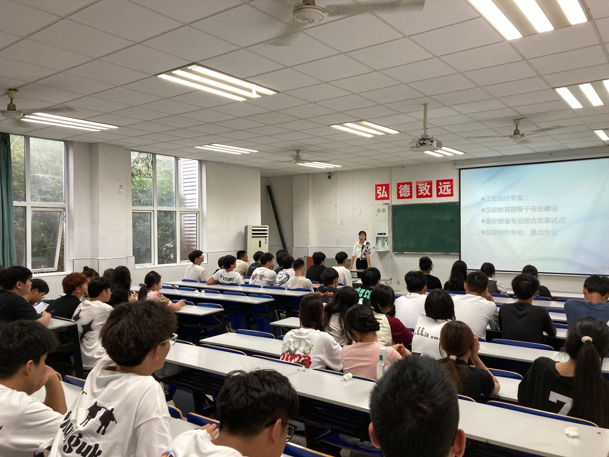 王起老师从工业设计专业定位、培养目标、就业方向、前景、课程设置、实习实训场所、学生获奖作品展示、承担安徽省工业设计大赛专项赛及取得的成果等方面进行深入讲解。