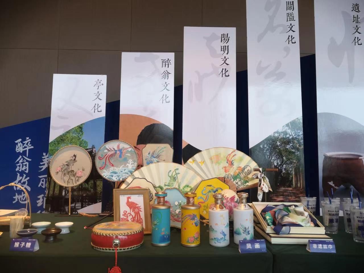 为展示滁州文化的深厚内涵,倡导经济文化协同发展的理念,琅琊区文旅局在论坛所在地金鹏琅琊玖玖广场酒店举办了滁州非遗文化展示活动。我院教师曹明和省级非遗项目凤阳凤画市级传承人陈海珍设计的以凤画为主题元素的文创作品在现场展出。展出期间,省市领导听取了传承人对凤阳凤画的介绍,并对非遗文化与日常生活结合的文创思路予以肯定,建议尽快与相关企业对接。据悉,曹明和陈海珍设计的龙凤酒瓶系列和滁菊礼盒包装将参加9月23日滁州市博物馆开幕的长三角非遗文化展示活动。