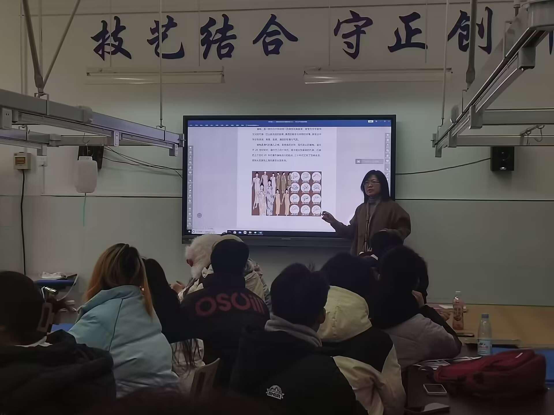 2023年12月24日下午,一场题为“芳华袭人——旗袍分类与设计图解”的讲座在致学楼113教室举行,本次讲座由传媒与设计学院于雯雯老师主持,外聘服装专业教师童小玉主讲,22级服装与服装设计专业、23级服装与服装设计专业50多位同学聆听了讲座。