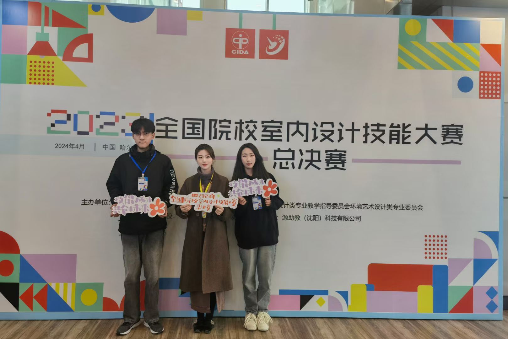 为加快构建现代职业教育体系,进一步推动室内装饰行业高质量发展,2024年4月9日-11日,2023年全国院校室内设计技能大赛总决赛在哈尔滨举办。Beat365传媒与设计学院王瑶老师指导学生朱婷婷、马其林斩获国赛团体二等奖。