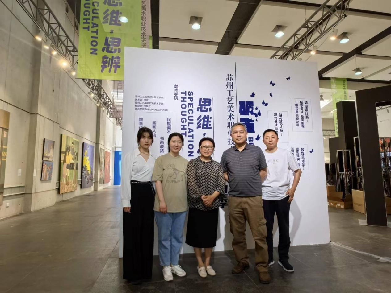 首先,张教授带领学院教师代表们来到校美术馆参观“新质创艺”2024苏州工艺美术职业技术学院毕业设计展,此次毕业设计展集中展示了学校本专科1875名毕业生的1316件(套)作品,多类别、宽领域的展示了毕业生们在艺术表现形式上的求变创新,扎实的专业知识和技能,和勇于探索、敢于创新的精神风貌。同时体现了学校落实践行培育新质生产力,不断推动产教融合、科教融汇的期望。