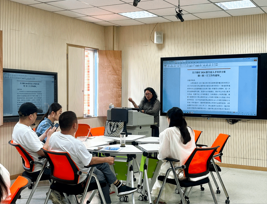 为主动适应数智赋能等新质生产力发展需求,构建体系合理、内容先进、岗位导向明确的人才培养方案, 2024年6月3日下午,传媒与设计学院设计艺术系全体专业教师在德馨楼206教室召开了2024级人才培养方案主题教研会议,会议由设计艺术系主任黄瑞主持。