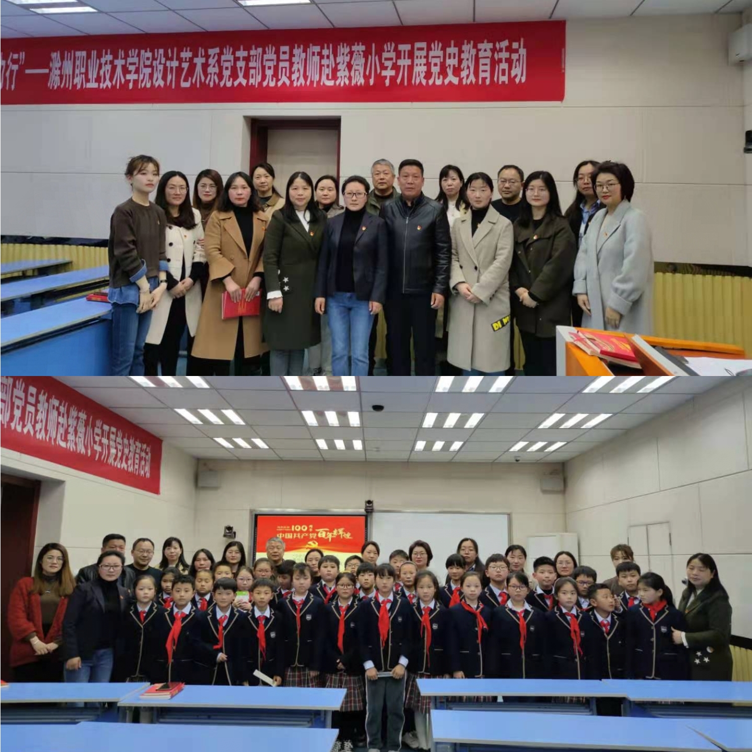 2021年4月15日下午三点设计艺术系党支部组织党员教师走进紫薇小学开展党史学习教育主题党日活动,紫薇小学第二党支部吴青花书记与支部党员教师参与会议,本次会议由艺术设计系党支部书记黄瑞主持。