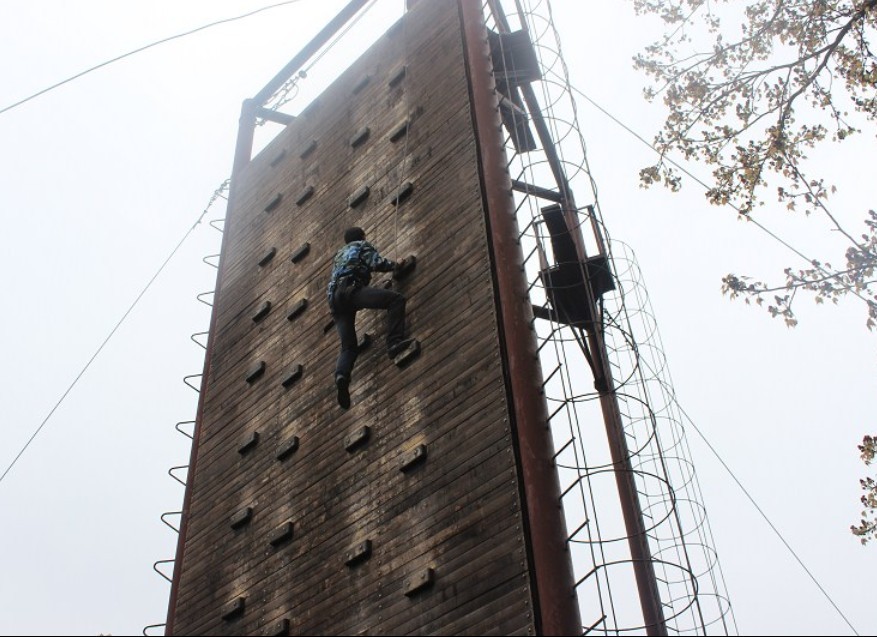 活动开始前王教练向同学们介绍了活动的目的和注意事项,开展了“人椅”活动的热身游戏,使大家更加了解彼此,接下来开展了需要考验胆量和相互配合的“信任背摔”,最后还开展了攀岩和越过4.08米的“高墙”。通过这些活动使同学们都学到了在课堂上所学不到的东西,达到了在游玩中学习,在学习中进步的目的。