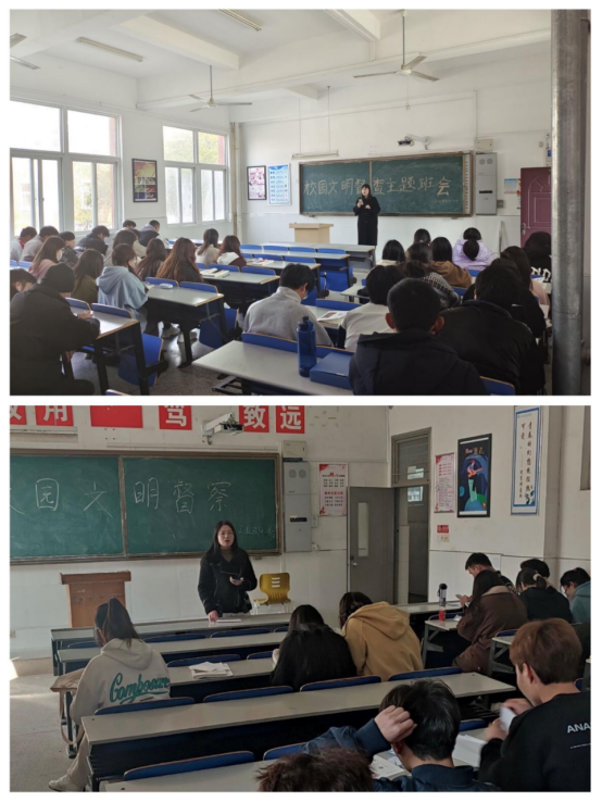 王琴要求辅导员要以校园文明行为规范检查为抓手,适时关注学生动态,确保学生安全稳定。另外,她还就校园行为督查月、2022年度学院征兵工作的事情进行了强调,要求所有辅导员务必按照学院部署,认真履行职责,确保各项工作的顺利开展。最后各辅导员就征兵工作、学风建设、心理健康教育工作等事项进行了讨论交流,并及时在会后召开了各项主题班会,达到有效的宣传效果。