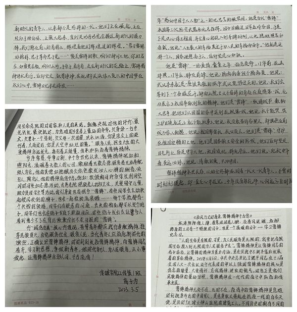 此次征文活动得到了22级各团支部的积极响应和广泛关注,活动过程中,团员青年们积极续写雷锋日记,记录身边的“雷锋”故事、“雷锋”精神,抒写“学雷锋、讲奉献、树新风”的心得感悟,畅谈对“新时代雷锋精神的思考和探讨,充分展现了新时代青年大学生勇挑时代重任投身实现中华民族伟大复兴中国梦的精神面貌,同时由各班级团支部委员评选出优秀征文,获得优秀征文评比结果的团员青年们纷纷上台畅谈自己的撰写心得,声情并茂地抒发着自己对雷锋精神的观点。