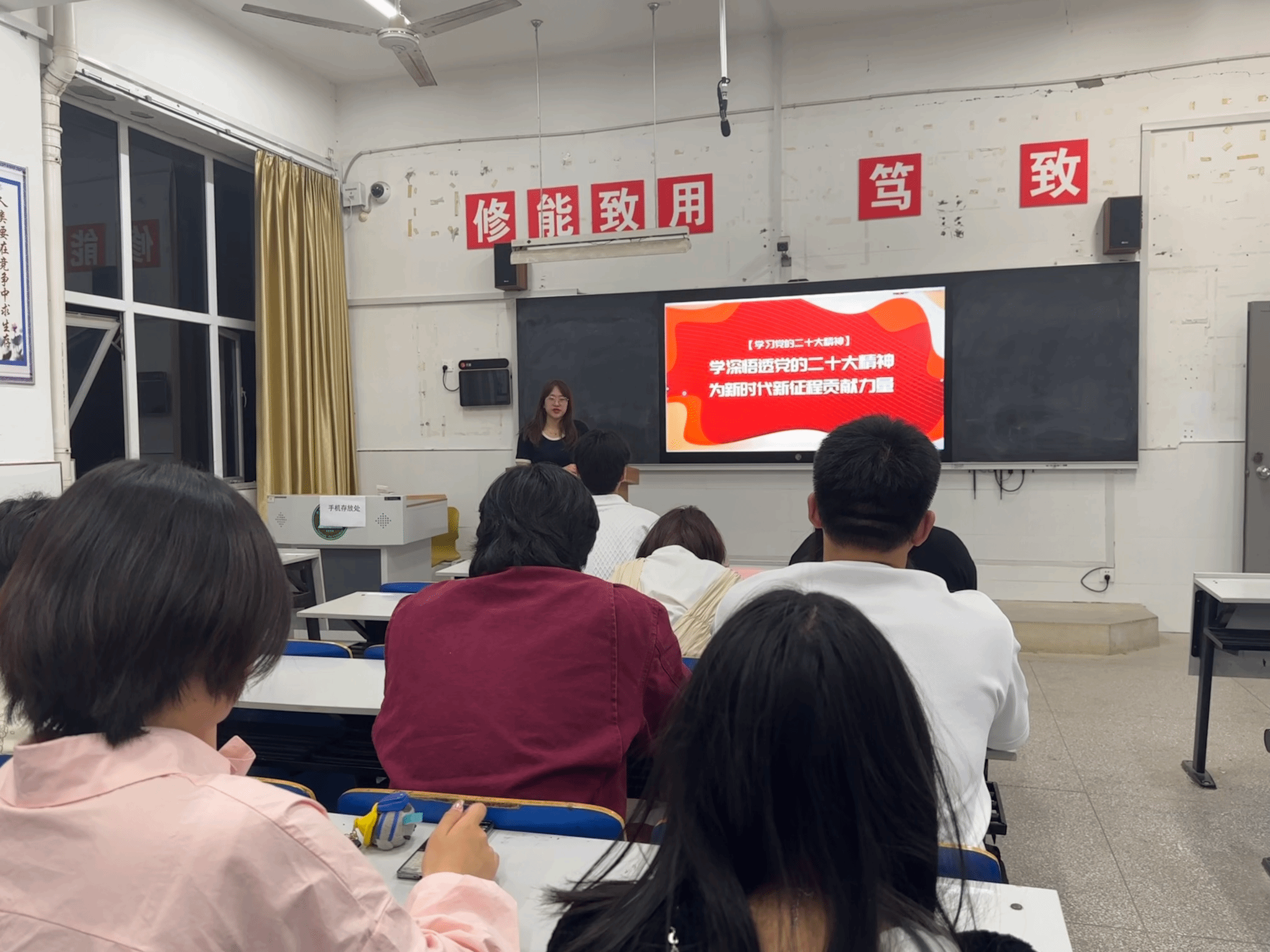 党的二十大是一次高举旗帜、凝聚力量、团结奋进的大会,在党和国家发展进程中具有极其重大的历史意义。学习贯彻党的二十大精神,是当前和今后一个时期的首要政治任务。传媒与设计学院为引导入团积极分子持续学习悟透党的二十大精神,4月28日在致学楼4107开展了“学习二十大精神 追忆初心向未来”的2023年入团积极分子第五次主题团课,由团总支副书记唐自彩主讲。