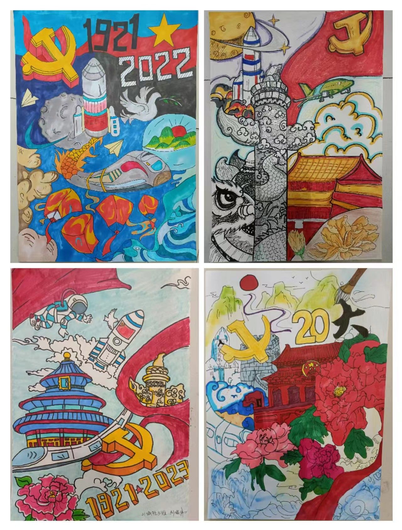 丹青吐彩,翰墨飘香。为了学习宣传贯彻党的二十大精神,引领广大青年厚植爱党、爱国情感,2023年5月23日,传媒与设计学院团总支承办“学习党的二十大,手绘礼赞新征程”艺术手绘比赛,以党的二十大精神内容为主题,依托绘画艺术形式,组织各学院参加艺术手绘创作活动。各学院学子以绘画的形式热情讴歌党波澜壮阔的发展历程,礼赞党彪炳史册的丰功伟业。