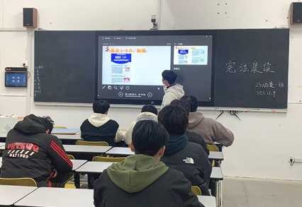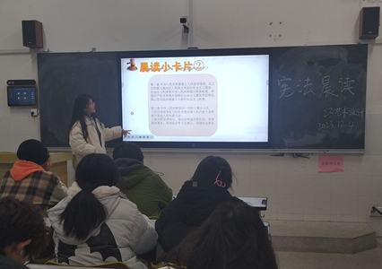 为全面学习贯彻党的二十大精神,深入学习贯彻习近平法治思想,响应国家宪法日号召,引导学生深入了解宪法、尊崇宪法精神、增强法治观念,推动校园法治文化建设,传媒与设计学院团总支于12月4日组织开展“宪法晨读”活动。