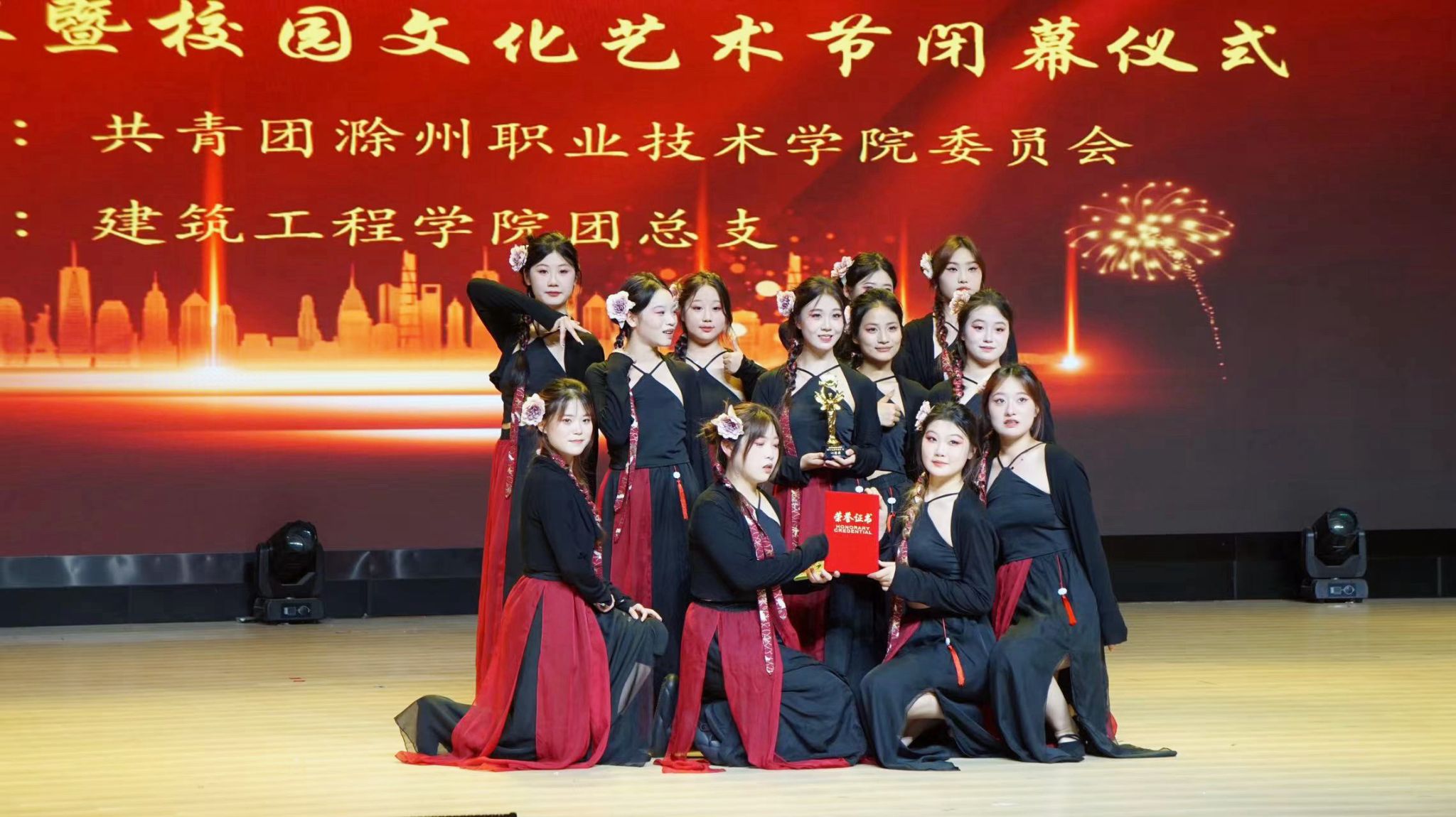 比赛中,选手们身着华丽的服装,以充满青春活力的舞蹈,展现了舞蹈艺术的独特魅力。他们或轻盈飘逸,或激情四溢,每一个动作都充满了力量和美感。观众们被选手们的精彩表演深深吸引,不时爆发出热烈的掌声和欢呼声。经过激烈的角逐,最终,传媒与设计学院的参赛舞蹈《莲韵》荣获一等奖,本次获奖的参赛舞蹈的选手经过我院团总支的层层筛选和精心指导,她们凭借其出色的舞蹈技巧和深情的演绎,赢得了评委们的高度评价和在场观众的热烈掌声。