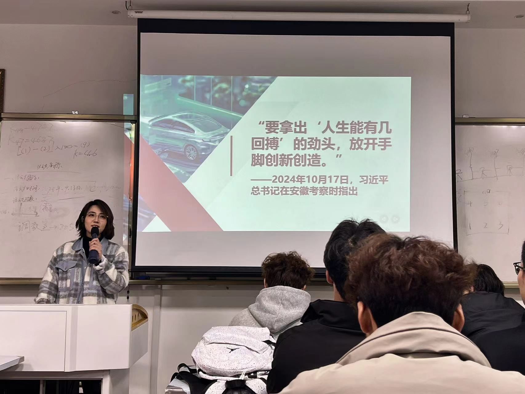 王迪从充分认识习近平总书记考察安徽重要讲话的重大意义、深刻领会习近平总书记考察安徽重要讲话精神的丰富内涵、切实推动习近平总书记考察安徽重要讲话精神落地生根三个方面作了深入浅出、全面系统的宣传解读。号召广大青年学生在总书记重要指示引领下为强国建设、民族复兴伟业挺膺担当。