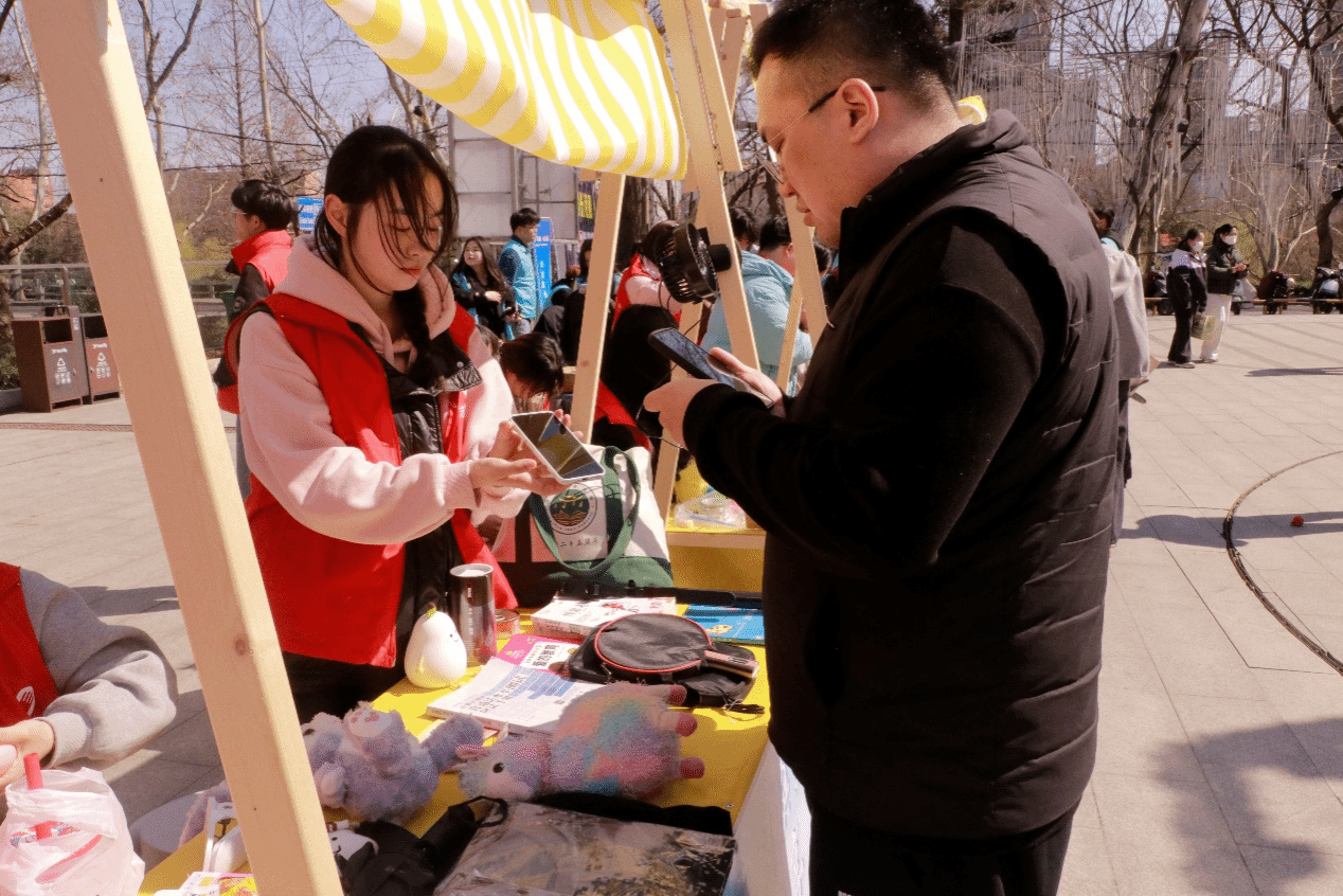 此次活动的摊位主题是“设计筑梦,爱心义卖”。我院15名志愿者将前期收集准备的各类义卖物品及艺术作品带到摊位现场,义卖物品丰富多样,有同学们亲手设计制作的文创产品,如精美的手绘明信片、独具创意的手工艺品,还有书籍、文具、生活用品等。这些物品不仅承载着同学们的心意,更展现了我院学生的创意与才华。摊位前人头攒动,市民们精心挑选心仪的物品,纷纷慷慨解囊。