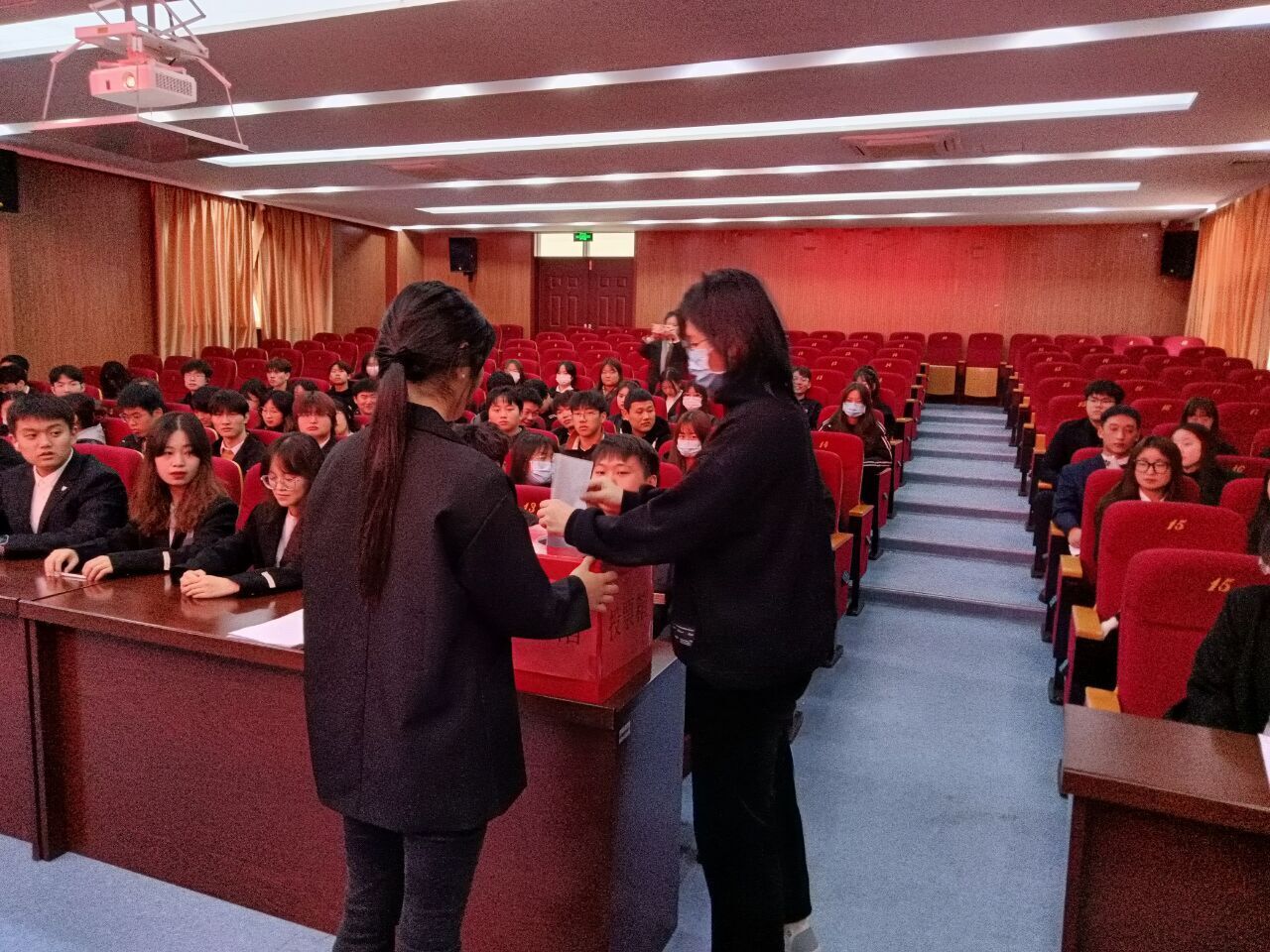 会议主持人宣读会议须知并宣布大会开始。在庄严雄壮的国歌声中,传媒与设计学院第四次学生代表大会拉开了帷幕。