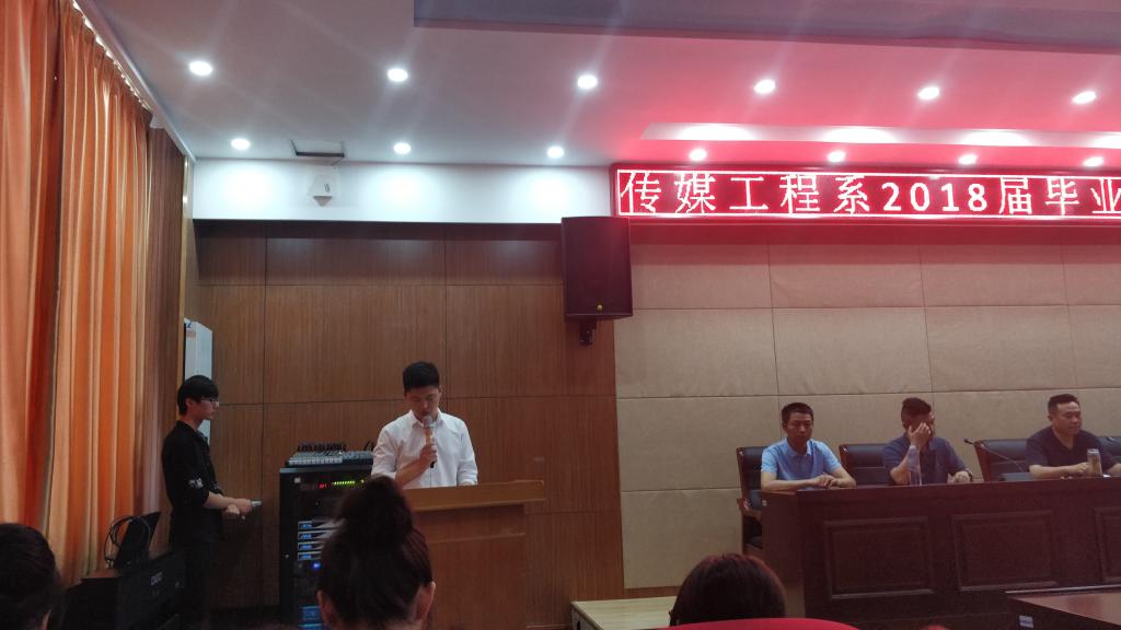 6月24日下午2点30分,传媒工程系于南阶205举办毕业生毕业典礼。参加此次典礼的有系党总支书记王广保、系副主任闻建强、教师代表和毕业班辅导员等。