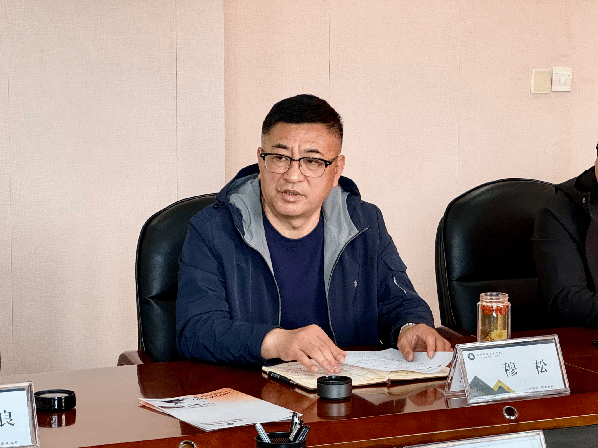 叶晨光对学校的热情接待表示感谢,并介绍了滁州市文旅集团的发展状况和未来发展规划,针对助力乡村振兴和地域文化推广两大板块,希望和学校开展更加广泛的交流合作,协同培养文化创意高层次人才,联合开发文化产业项目。