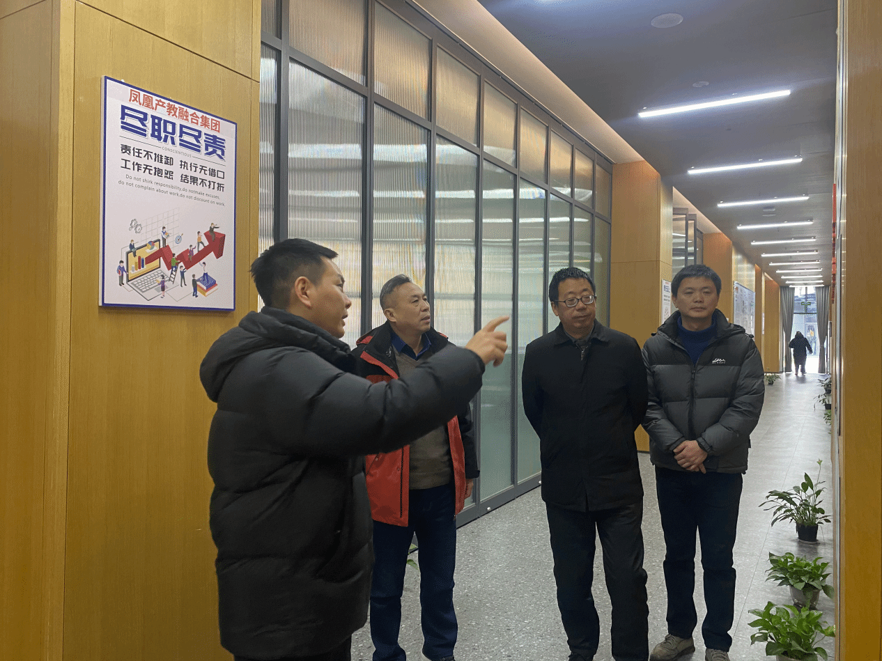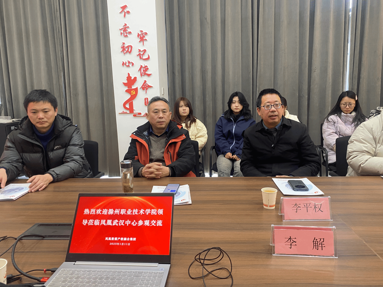 为进一步加强Beat365学生岗位实习管理,增进与实训基地的沟通交流,传递学校对实习学生的关怀。1月11日上午,校党委委员、工会主席李平权,传媒与设计学院党总支书记王广保,传媒与设计学院教学秘书、骨干教师蔡忠弟,传媒与设计学院专职辅导员郭伟一行4人来到凤凰数媒科技(武汉)产教融合企业实践中心,探望在此参加实训的17名学生和驻点老师。