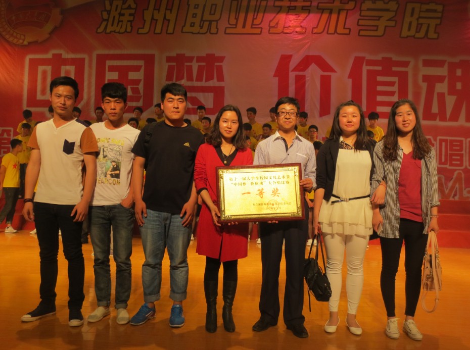 5月7日下午,传媒工程系在“中国梦 价值魂”大合唱比赛中,党总支书记王广保、主任闻建强、杨之武带领合唱队用历时两个月精心准备彩排的《江山代有才人出》和《大中国》两首歌,唱出了师生对祖国的无限崇敬,最终获得了全场最高分!最终喜获一等奖!