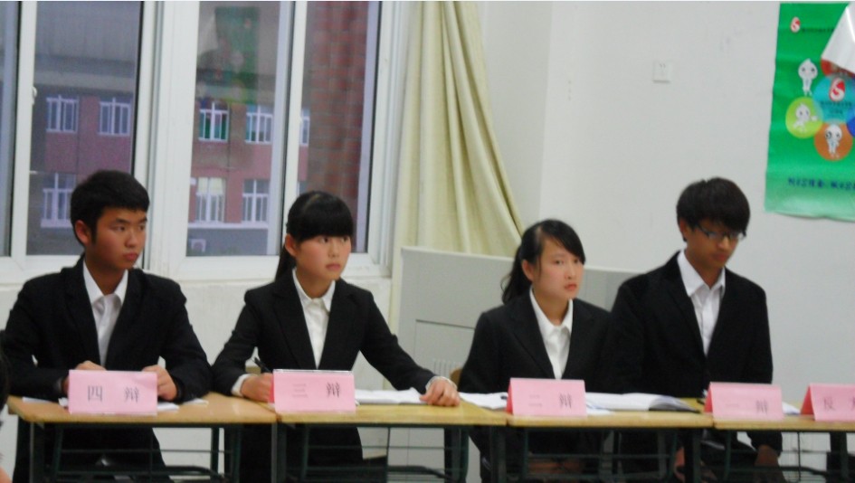 开始,我方辩友就以各自新颖、诙谐的言语作出精彩的自我介绍,从而赢来了整个赛场的第一波高潮。在接下来的三个对战环节中,双方都备战充实,你来我往,互不相让,各自围绕着自己的观点进行阐述。自由辩论的阶段中,比赛气氛更是异常的激烈,双方唇枪舌战,尽显风采,侃侃而谈而又不失风度。
