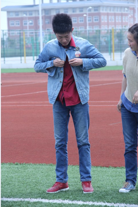 2014年5月7日中午,传媒工程系在新操场举办 “走下网络,走出宿舍,走向操场”趣味活动扣纽扣比赛。传媒工程系各班学生在学生会主席的带领下参加活动开幕仪式。