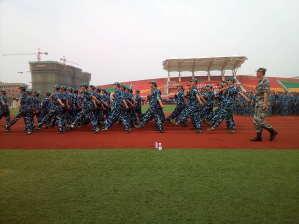 训练场上,军官们严格要求新生整理军容和端正军姿,不时亲自示范,并手把手纠正基本的动作,同学们在英姿飒爽的军官的带领下认真训练,丝毫没有半点偷懒。在教官亲切的关怀和严格训练下,在短短的几天里,齐步走、正步走、齐步变正步、解散、集合及分列式等预定训练科目已初见成效。