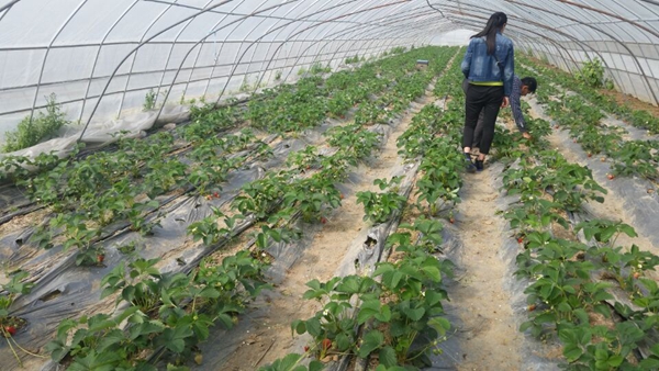 参加此次活动的学生会成员在主席的组织下于学校大门口集合,坐上大巴,30余人的队伍浩浩荡荡地前往金鹏生态园基地。草莓棚里春意盎然,红彤彤的草莓更是让人食指大动,大家立即投入到“采摘大军”中去,一时间,大棚里人影憧憧,伙伴们一边忙着采摘草莓,另一边还不忘了摆出各种pose,自拍互拍,到处洋溢着欢声笑语。