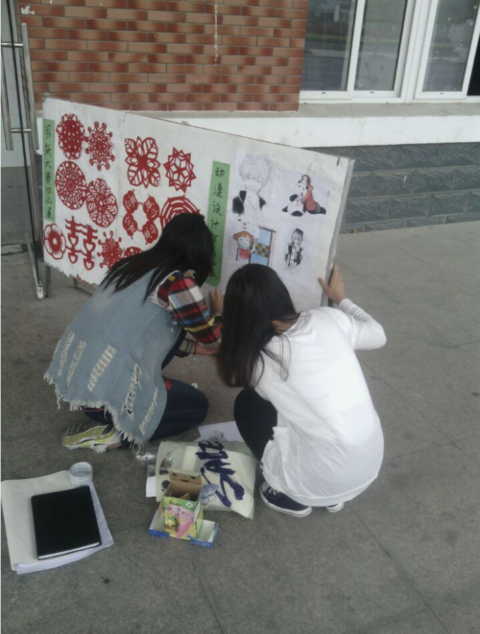 此次作品展分为剪纸大赛作品展、海报大赛作品展、动漫设计作品展、工业产品设计作品展。艺术楼下摆放着大大小小的展板,展示着一幅幅学生作品,路过的师生看到后驻足欣赏,赞扬声不绝于耳。