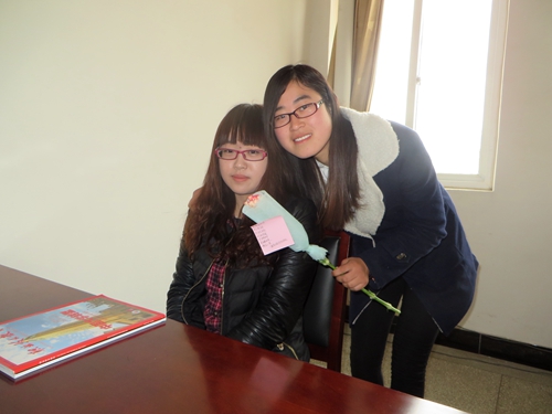 上午9时,在学生会主席的组织带领下,同学们到各个办公室为女老师们送去诚挚的祝福,感谢老师们一年来的辛勤工作,祝愿她们越来越美丽,越来越年轻!