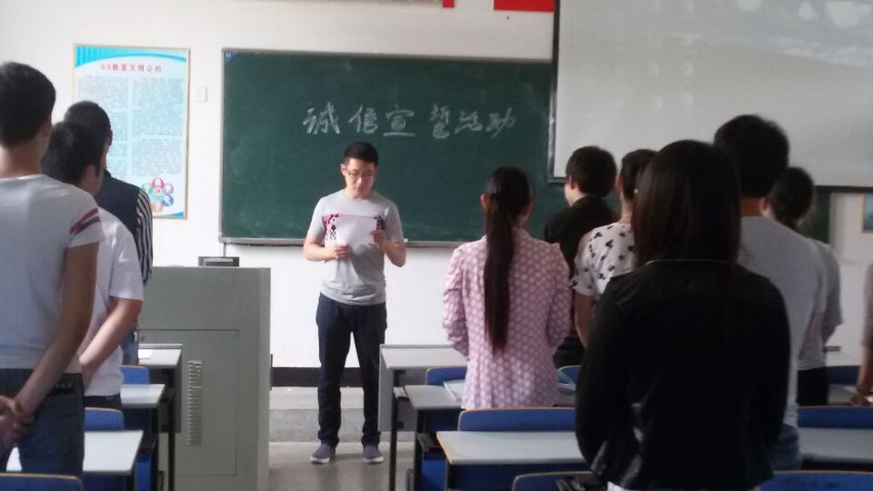 孔子言:人而无信,不知其可也。为了营造良好的学习氛围,体现公平公正的考试原则。6月8日中午我系团总支教学楼102举办了诚信考试宣誓活动。