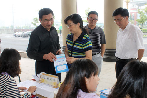 沈书记首先询问了各专业报到情况,要求系部务必做好新生接待工作,要认真梳理学生报到过程中出现的问题,在提高专业吸引力上下功夫。沈书记特别强调要想办法提升系部和专业的社会认知度。院纪委书记牛春雨认真查看了为新生接待准备的宣传资料,院长助理刘宏则仔细了解了艺术类学生的报到情况。陈震书记和闻建强主任详细地向院领导汇报了学生报到情况和工作构想。沈书记在离开时,希望大家继续努力。