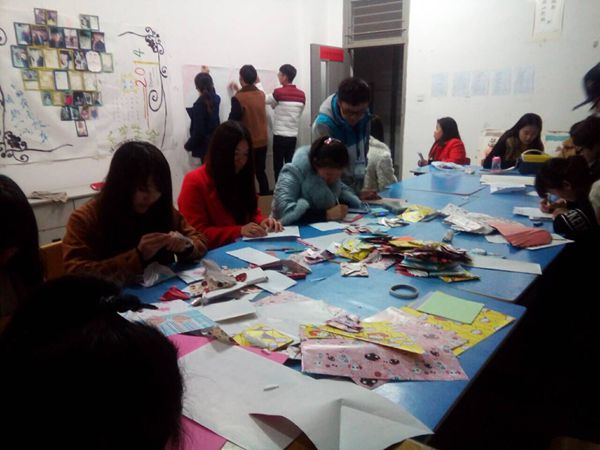 2016年3月3日晚,传媒系学生会成员在办公室积极热情地为女生节活动做前期准备。