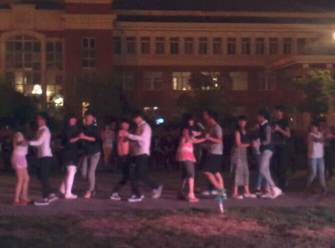 晚上7点整,活动开始后,优美的音乐在喷泉广场上空飘荡,同学们携着各自的舞伴,踏着节拍,轻盈舞动,一片温馨和谐。优扬的音乐,动人的舞姿,组成一幅动人的图画,舞者们青春的面孔,更为这幅画作增添无限生机。