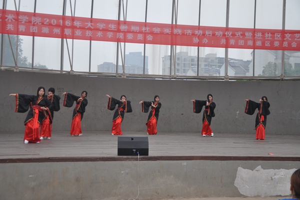 传媒系团总支和学生会成员于6月15日下午五点半点来到了99广场半圆舞台,六点,启动仪式正式拉开帷幕。启动仪式上我系学生会代表队表演古典舞蹈《礼仪之邦》,超唯美汉服古典舞,体现了中国五千年文化源远流长的大气磅礴,和现存四大文明古国的礼仪与气度,其舞蹈风格柔美俏丽。,多彩的舞姿充分展示了学生社会实践活动精神目标,以及大学生社会实践活动的意义。