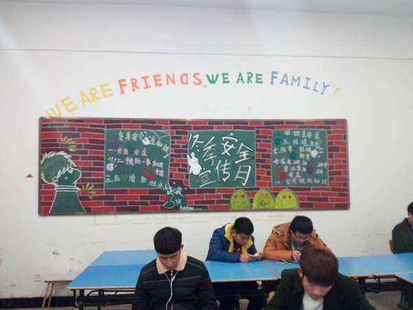各班级围绕冬季安全教育主题对黑板报进行了精心的设计,图文并茂、形式多样,为宣传安全知识各尽其能。黑板报的内容主要涉及校园安全、交通安全、生活安全、防火、用电及如何自救等各个方面。最终,经过学生会认真评选:建装三班,动漫一班,建装一班分别获得了本次比赛的第一、二、三名。