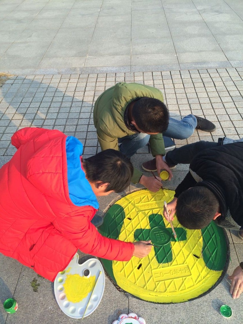 12月26日上午9点,传媒工程系的学生在这个温和的冬日里开展了第二届美化校园环境井盖创意绘画大赛。