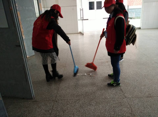 这里清扫的主要是我系教学楼、北阶教室、林间小道以及校园草坪,在学生会主席程燕的简单分配下,学生会成员主动积极清理垃圾,不怕脏,不喊累,相互配合。林间小道、草坪深处均已不见塑料袋、瓜皮纸屑的踪影。生活区的橱窗也被擦拭得一尘不染,小广告被清理得干干净净。同学们用自己的实际行动为学校增添一份清新,一抹明亮,阳光下,滴滴汗水挂在她们自豪灿烂的脸上,显得如珍珠般耀眼闪亮。