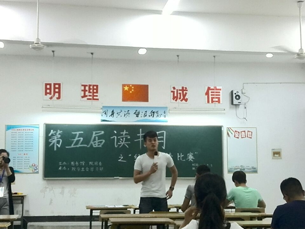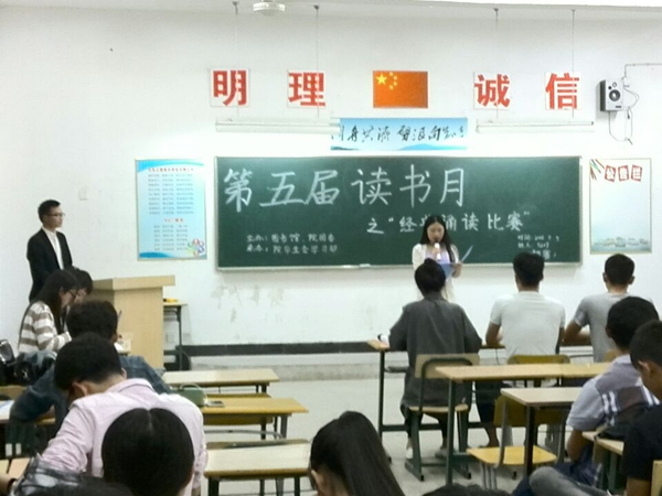 为弘扬中华优秀传统文化,提高大学生的人文素质和道德情操,推动校园文化建设,2016年5月5号晚,我院图书馆、院团委、院学生会学习部,组织进行了这次经典诵读比赛。传媒系学生代表黄其峰、时梦月、肖遥、三位同学参加了此次比赛,其中黄其峰同学在众多参赛者中脱颖而出入围复赛环节。