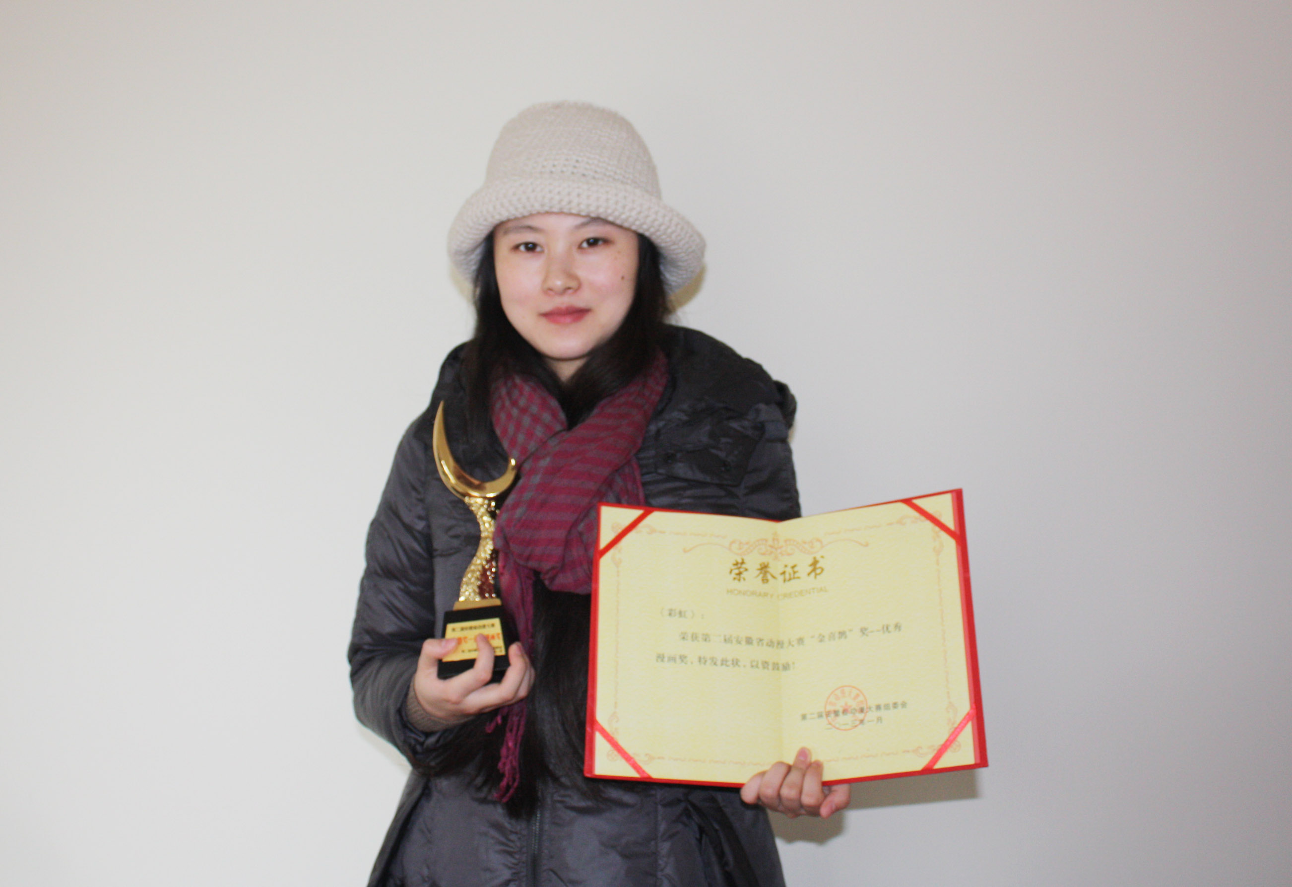 艺术设计系工业设计教研室青年教师李雯雯凭借漫画作品《彩虹》获得优秀漫画奖,并捧得“金喜鹊奖”奖杯,其另一件作品《一边倒小姑娘的理想论》获得入围奖;动画教研室范文娟老师指导的学生动画作品《再来一瓶》(作者:余熙男、丁婉婉、张晨)、《未来的人类》(作者:刘岩)、青年教师白琼和尚彩云携手的作品《婵之翼》、《机器人诊所》、《陌生的来客》获得入围奖;