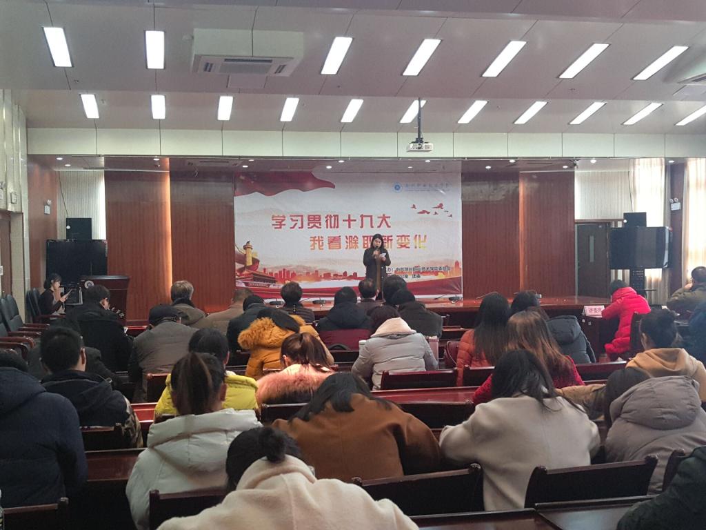此次演讲的内容围绕十九大会议精神主题,在新的时代背景下,广大青年一定要坚定理想信念,志存高远,脚踏实地,勇做时代的弄潮儿,在实现中国梦的生动实践中放飞青春梦想,在为人民利益的不懈奋斗中书写人生华章。