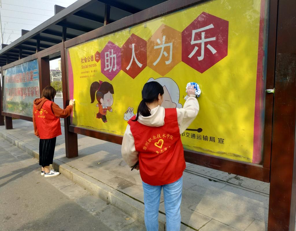 2018年3月26日中午,传媒工程系学生会学习部、办公室共同组织的学雷锋精神义务劳动之清洁公交站台活动如期开展。此次清洁的公交站台集中在学校门口附近区域。